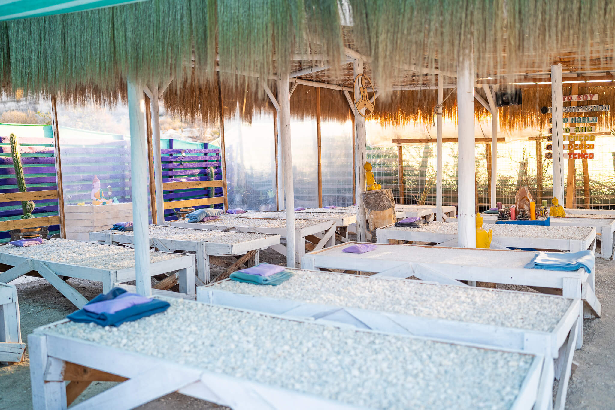 Entre sus principales atractivos, destacan las camas de cuarzo, las cuales no requieren reserva y funcionan por orden de llegada. Estas camas permiten a los visitantes recargar energías, conectar con la tierra y experimentar una sensación de equilibrio físico y emocional. Además, quienes busquen una vivencia aún más profunda pueden participar en terapias con cuencos tibetanos, realizadas dentro de una pirámide especialmente acondicionada para alineación de chakras. Eso sí, este servicio requiere reserva previa a través del número de contacto.