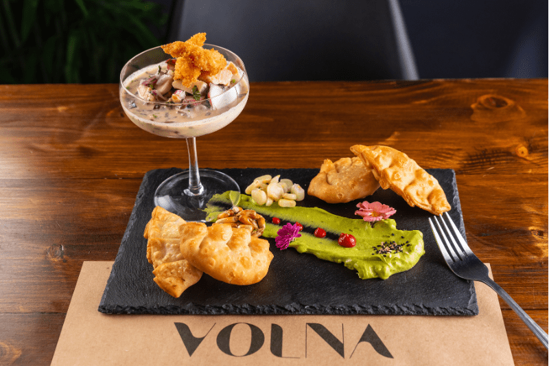 La especialidad del Restaurante Volna es la comida fusión Nikkei, un estilo culinario que combina técnicas japonesas con ingredientes típicos peruanos. Aquí encontrarás ceviches con toques orientales, sushis gourmet como el acevichado o el de lomo saltado, y tablas de filete de res que destacan por su presentación y frescura. Esta propuesta es posible gracias al trabajo conjunto de dos chefs: una chef vileña con estudios en gastronomía internacional y especialización en sushi, y un chef peruano encargado de la cocina caliente. Juntos, crean platos que honran las raíces de ambas culturas, pero con una identidad local propia.